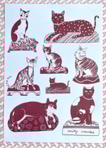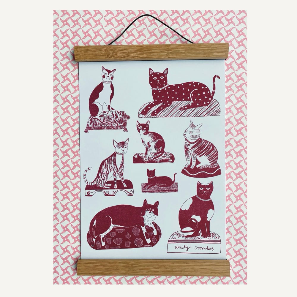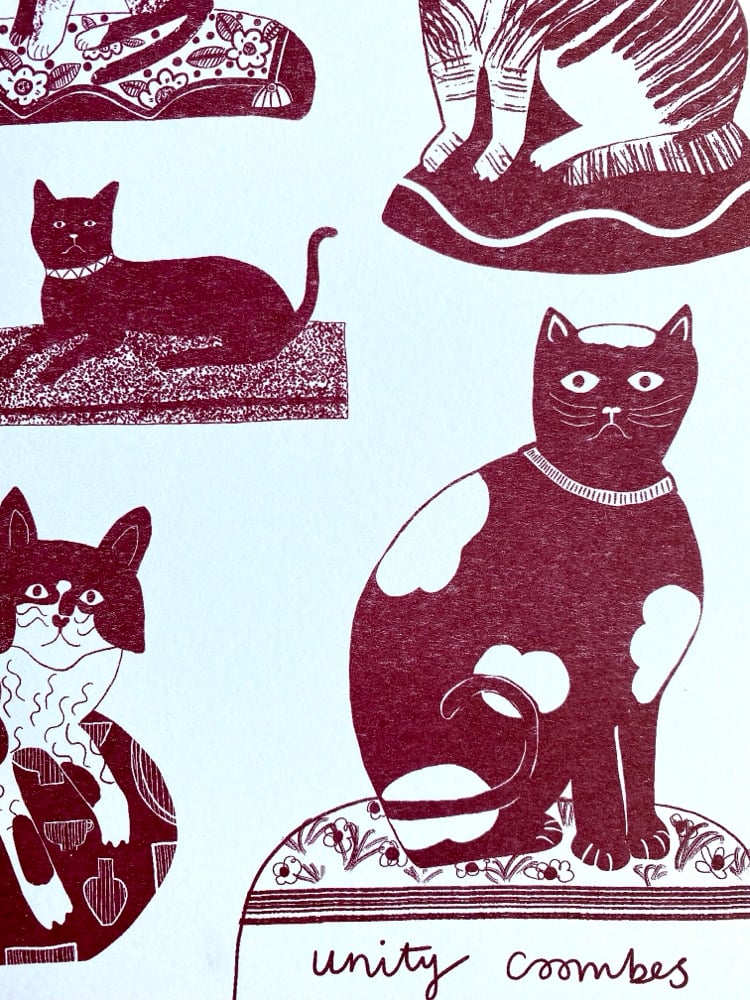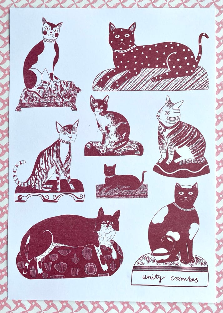 Staffordshire Figure Cats Risograph Print